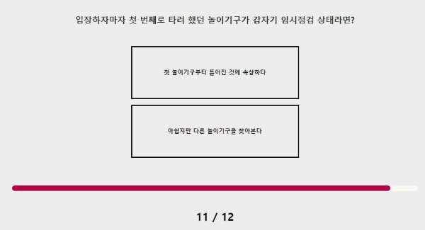 입장하자마자 첫 번째로 타려 했던 놀이기구가 갑자기 임시점검 상태라면? 첫 번째 놀이기구부터 틀어진 것으로 속상할 것 같아요. 계획적으로 어떤 놀이기구부터 타야지 효율적이라고 생각하는 성격이기 때문이에요