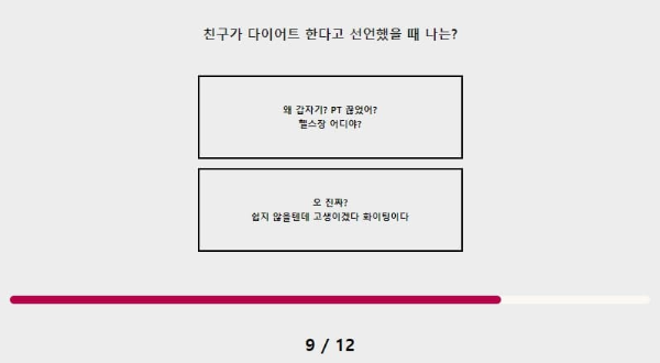 친구가 다이어트한다고 선언했을 때 나는? 왜 갑자기? PT 끊었어? 헬스장 어디야? 친구라면 관심사에 대해서 충분히 공감해 주는 거라고 생각해요. 많은 생각을 하고 행동으로 이뤄낸 친구이기에 더 관심이 생길 것 같아요